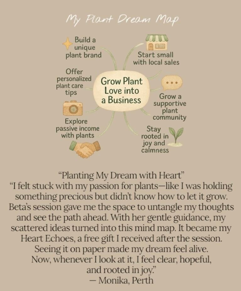 That’s when we created her Plant Dream Map, with the words at its center: Grow Plant Love into Business.
