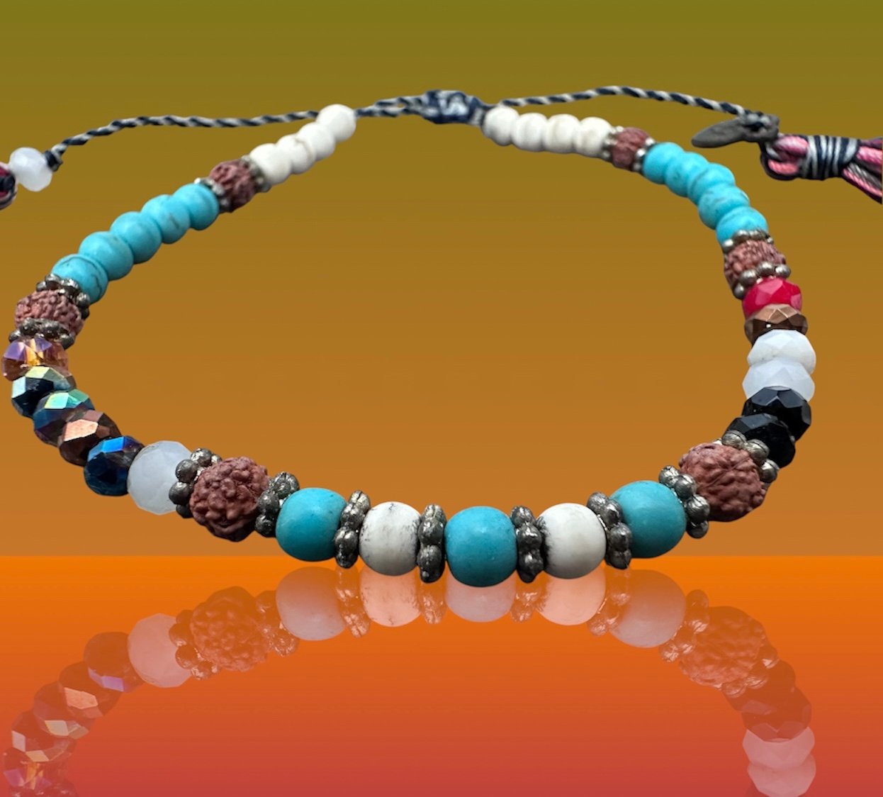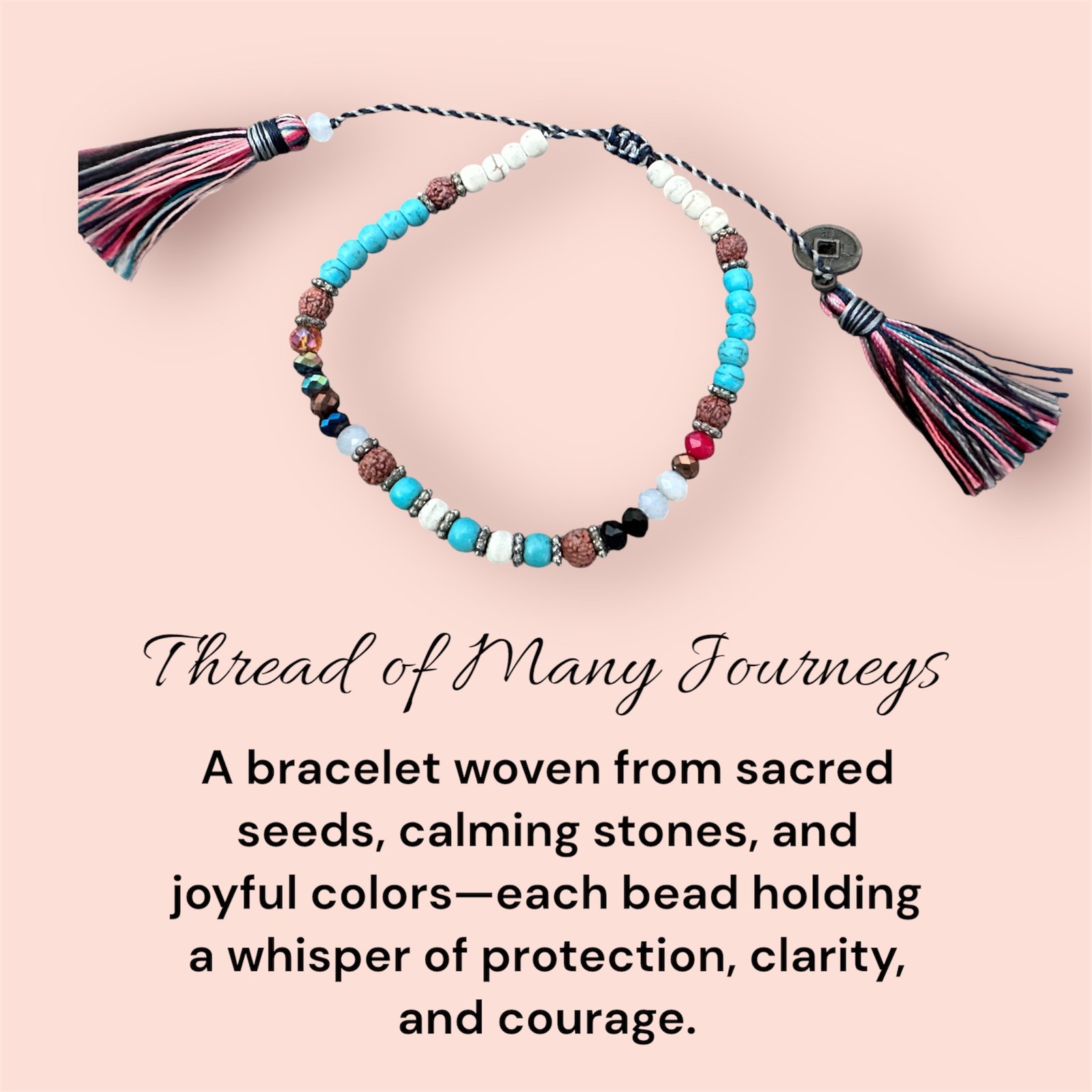 A bracelet woven from sacred seeds, calming stones, and joyful colors—each bead holding a whisper of protection, clarity, and courage.